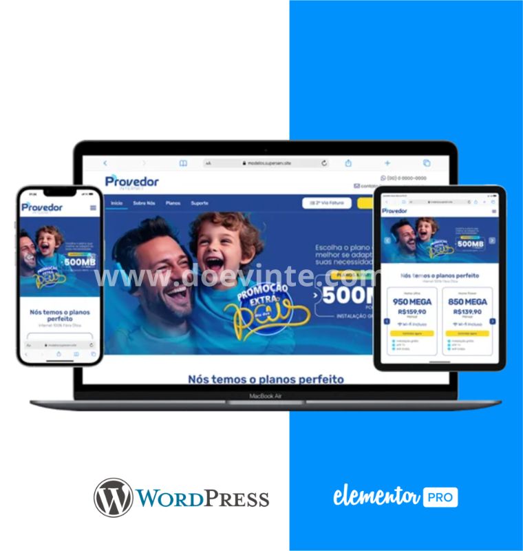 Facilidade de Personalização: Usando o Elementor Pro e JetEngine, é fácil ajustar cores, fontes, imagens e layouts de acordo com a identidade visual do provedor. Tudo sem precisar mexer em código!