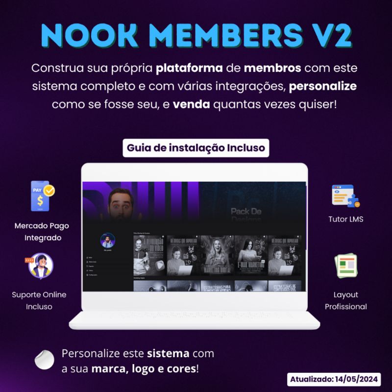 A Nook Members V2 é uma versão alternativa da famosa Nook Members V1, com design atraente e responsivo que transmite um profissionalismo incontestável para o seu cliente. Este script roda em WordPress e tem integração com WooCommerce e Tutor LMS, sendo um sistema completo para quem deseja evitar as taxas de plataformas de terceiros. Tenha sua própria área de membros profissional para vender seus produtos digitais. Para quem quer construir um negócio sólido na internet, ter uma plataforma própria é a melhor alternativa. Lembrando que você pode instalar essa plataforma quantas vezes quiser, sem bloqueios, e personalizá-la com logomarcas e cores.