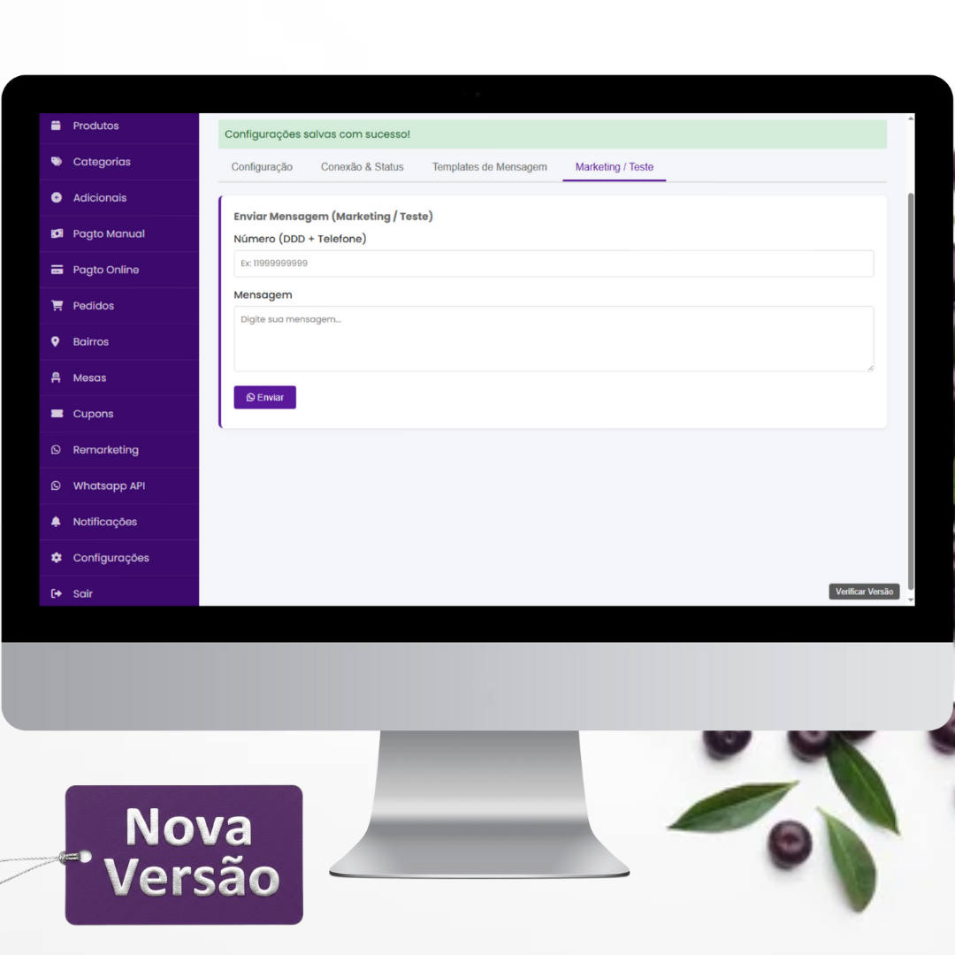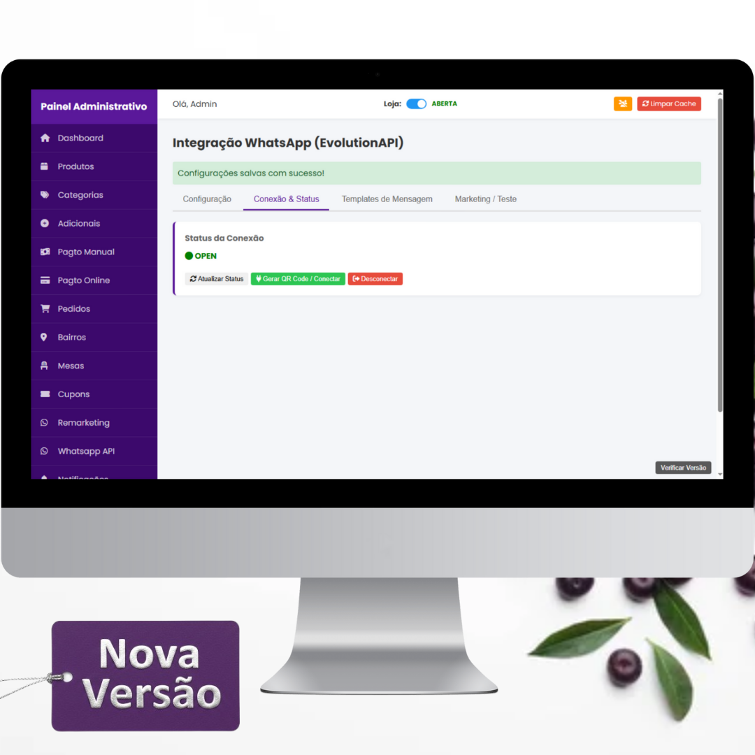 – Notificação automática para o Administrador quando um novo pedido chega (“Novo Pedido (Admin)”).