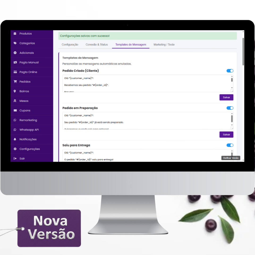 – Sistema de templates editáveis onde o administrador pode personalizar o texto de todas as mensagens automáticas.
